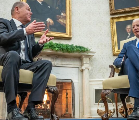 USA-Reise: Olaf Scholz bei Joe Biden: Deutscher Lautsprecher vor knisterndem Kaminfeuer